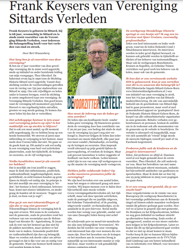 Onze voorzitter vertelt over Vereniging Sittards Verleden in de tweewekelijkse huis-aan-huiskrant "MijnGazet".