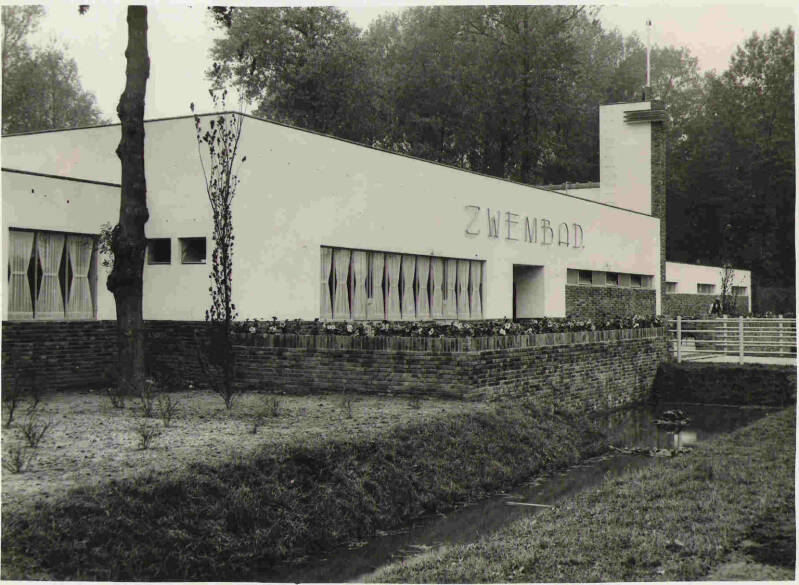 Een zwembad in het Villapark Het stadspark werd in fasen aangelegd tussen de jaren 1920 en 1927. Onder leiding en naar ontwerp van tuinarchitect Dirk Tersteegh werd het park in z.g. ,,landschapsstijl " gerealiseerd. De aanleg gebeurde in het kader van de werkverschaffing. Er heerste in die tijd grote werkeloosheid. Eerst kwam het zuidelijk gedeelte met de roeivijver tot stand. In 1924 - 1925 kwam het noordelijk deel rond de eendenvijver bij de Agricolastraat gereed. De structuur van dit gedeelte moet gezien worden vanuit de ook in dezelfde tijd aangelegde bebouwing met het Julianaplein als kern. De ingang van het park ligt in het verlengde van de straat naar dit plein. Vanuit de stad was er een zichtlijn via het Julianaplein naar de fontijn in het park. Latere bebouwing heeft de zichtlijn beperkt van het Julianaplein tot het park. In 1932 paste Tersteegh zijn ontwerp van het park aan, omdat er in het midden op een braakliggend gedeelte een zwembad zou worden aangelegd. Er was al enkele keren aangedrongen op de aanleg van een zwembad. Maar de aanleg ervan lukte nog niet zo gemakkelijk. In een tijd dat er alom een economische crisis heerste, ontstond er een mogelijkheid. Zoals in meer gemeenten toen is gebeurd (bekend is de aanleg van het Amsterdamse Bos),werd in het kader van de werkverschaffing aan werklozen op 22 augustus 1932 het besluit genomen om een zwembad te stichten. Dit zwembad werd ontworpen door architect G.H.H. Cuijpers in een stijl die rond de jaren dertig erg populair was nl. ,,de Stijl". Architect Cuijpers is geboren op 24 mei 1902 in Blerick. Zijn eerste baan was tekenaar/architect bij ir.Jules Kayser in Venlo (ook bekend als architect van de Basiliek in Sittard). In 1928, hij was hij al in Venlo getrouwd, is hij in Sittard gaan wonen in de Odastraat en in dienst getreden bij het architectenbureau Ramakers. Door onvoldoende bouwopdrachten daar, als gevolg van de economische crisis, is hij sinds 1 januari 1930 in dienst getreden als tekenaar/opzichter bij de Gemeente Werken van Sittard, waar wel voldoende opdrachten gecreëerd werden, omdat de overheid toen ter bestrijding van de groeiende werkeloosheid werk verschafte aan de vele werklozen. Onder leiding van de directeur van Gemeentewerken, de heer B.Moolhuysen kreeg Cuijpers de opdracht voor het ontwerp en constructie van een zwembad aan de Vijverweg. De naam "Zwembad" is gemaakt in zijn typisch handschrift. In de notulen van het bestuur van het zwembad is te lezen dat op verzoek van het Olympisch Commitee het ontwerp en foto's zijn opgestuurd naar Berlijn, waar in 1936 de Olympische Spelen gehouden zouden worden en waar tegelijkertijd een "Kunstwettbewerb en Kunstausstellung" gehouden werd, een aangelegenheid, die zaken die met sport te maken hadden, toonde en beoordeelde. In de notulen van het bestuur van het zwembad is niets meer te vinden over het oordeel in de "Wettbewerb" over het zwembad na de Spelen. Ook in Sittard heeft Cuijpers meerdere gebouwen kunnen ontwerpen. Voor de oorlog is de burgemeesterswoning aan de Agricolastraat door hem verbouwd en aangepast voor bewoning voor de toenmalige burgemeester Coenders (Baenjehoes). In het najaar begon men met het uitgraven van de zwembaden en kon er gebouwd worden. Dat verliep voortvarend en op 17 juni 1933 opende gouverneur Van Hövel tot Westerflier het nieuwe bad. Het water werd betrokken uit de roeivijver dat gevoed werd door bronnen. Het werd beschouwd als een der mooist aangelegde baden van Nederland. Er waren dan ook al gauw belangrijke zwemwedstrijden, bijv. in juli 1934 de internationale zwemwedstrijd Nederland-Frankrijk. Toen het zwembad er was, volgde natuurlijk al vrij snel de oprichting van een zwem- en waterpoloclub. Op 11 augustus 1936 werd hiertoe "Hellas" opgericht met P. Vilters als trainer en badmeester. Toen rond 1970 het nieuwe zwembad „ De Hateboer“ aan de Zjwienswei werd geopend, kwam er een stevige concurrent bij voor dit toen verouderde bad, al bleef het nog enkele jaren in gebruik tot in 1985. Na de sluiting werd er een restaurant met forellenvijver in gevestigd. Einde jaren tachtig kwam het gebouw leeg te staan en begon het verval. In 1993 werd het grotendeels gesloopt om bij het park te worden getrokken. Het nieuwe plan hield in een gedeelte van het gebouw te bewaren. De symmetrische gevel aan de voorzijde, de toren als verticaal element in de compositie en de hoge ruimte aan de noordzijde zijn karakteristieken van de oorspronkelijke vorm. In de voorgevel zijn enkele openingen gemaakt zodat een aantal zichtlijnen ontstonden naar de stenen sluis, de roeivijver en de Ophovener molen. De grote groene open ruimte achter de entree is bedoeld als evenementen-terrein met een aarden wal die het terrein omsluit. Met dank aan Gerard Cuijpers, zoon van architect Cuijpers Thur Laudy maakte ter gelegenheid van dit nieuwe zwembad het volgende gedicht: